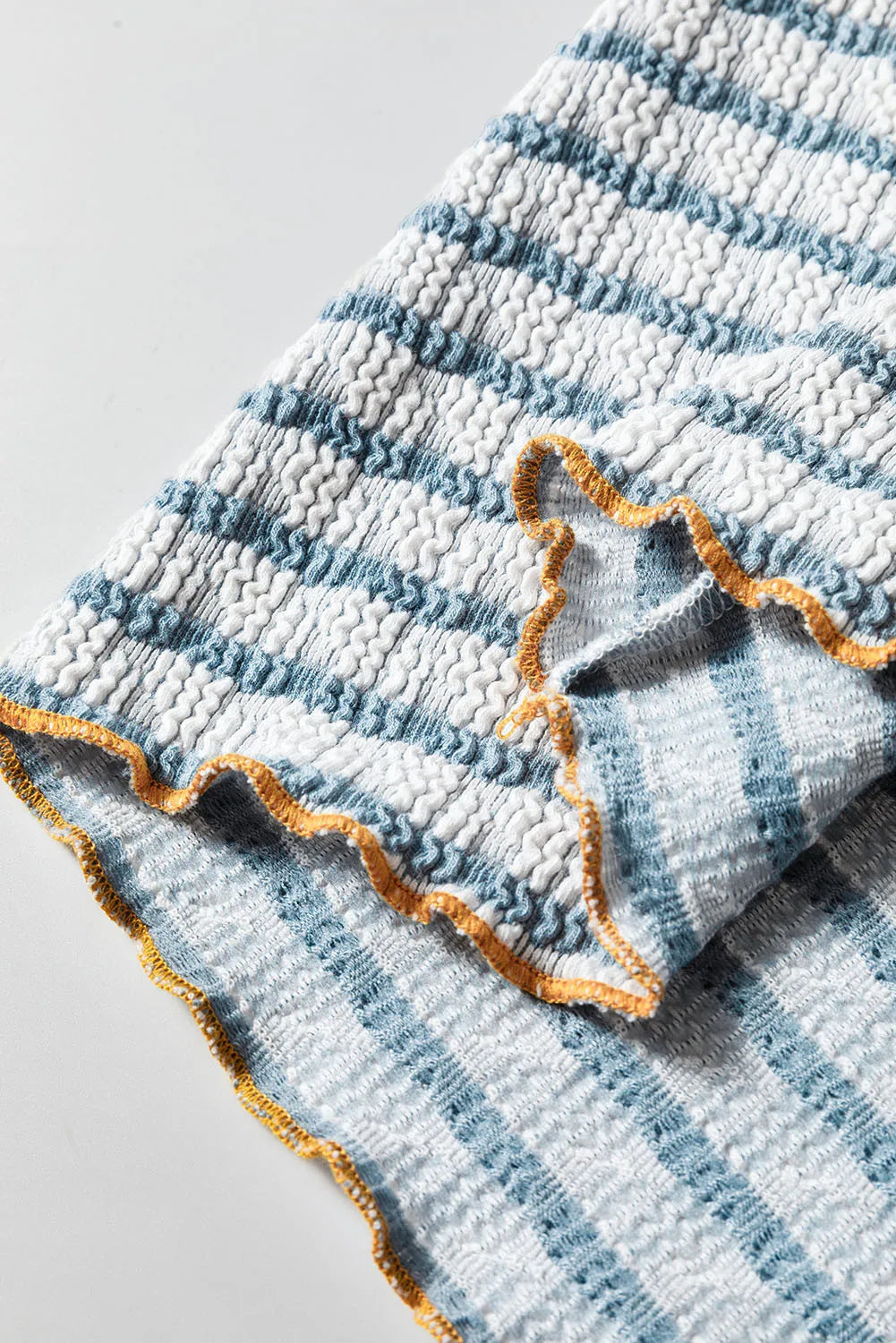 Striped Round Neck Dropped Shoulder Long Sleeve Top